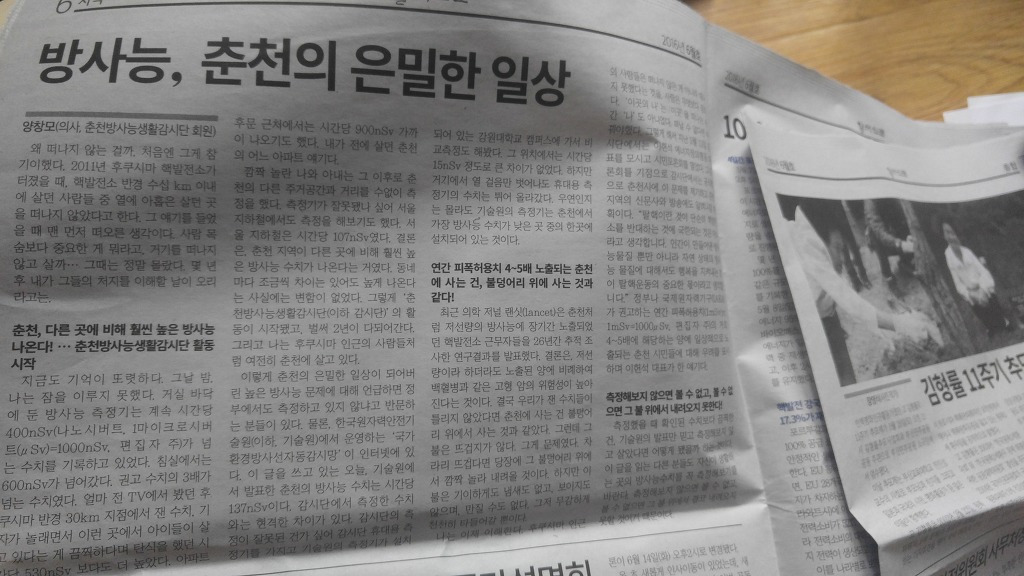 ▷ 방사능, 춘천의 은밀한 일상 (양창모 | 의사, 춘천방사능생활감시단. 탈핵신문 2016년 6월호):